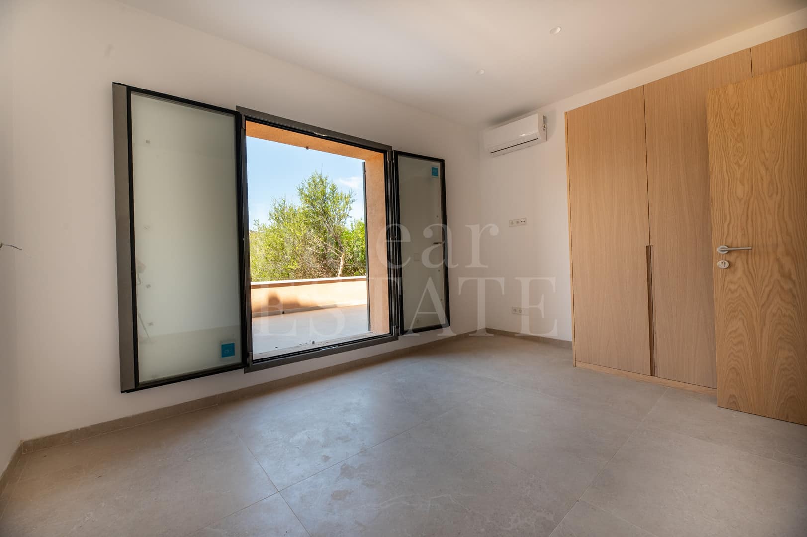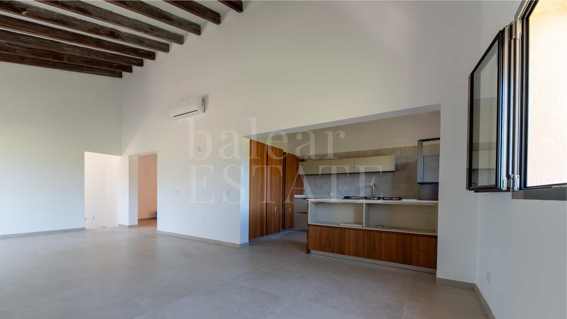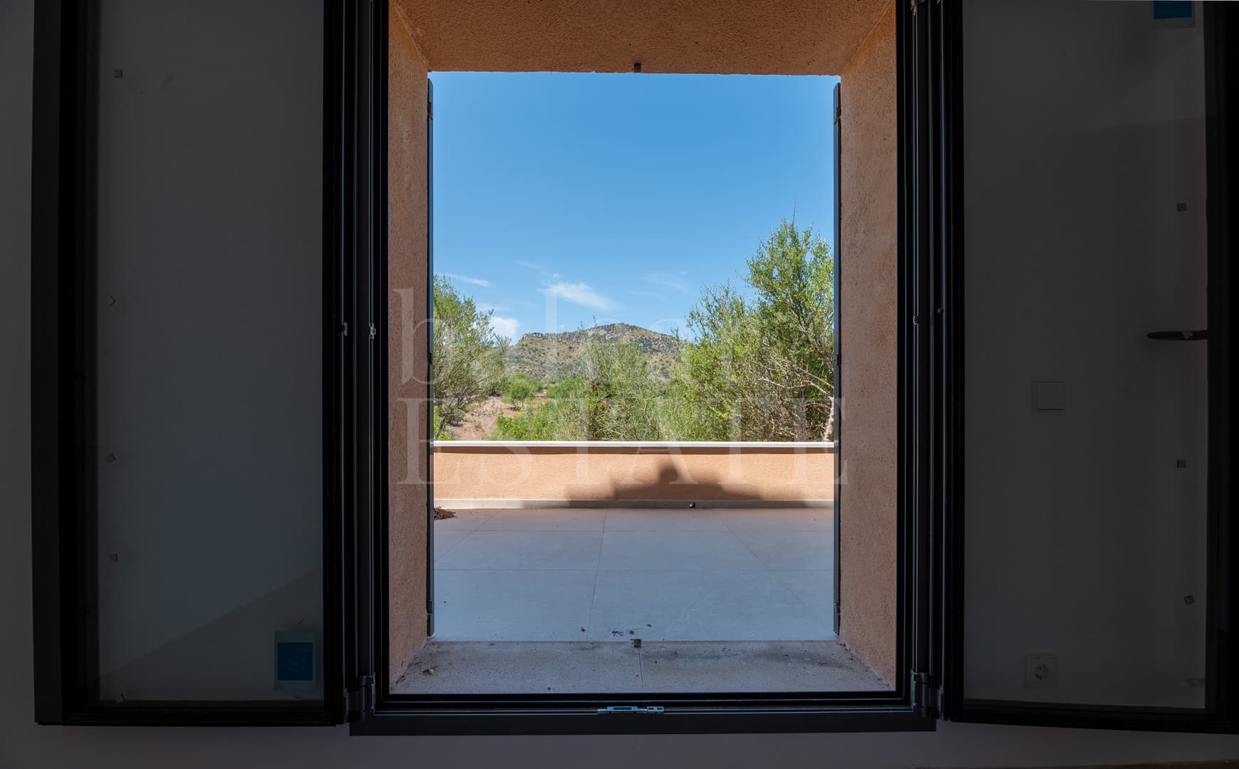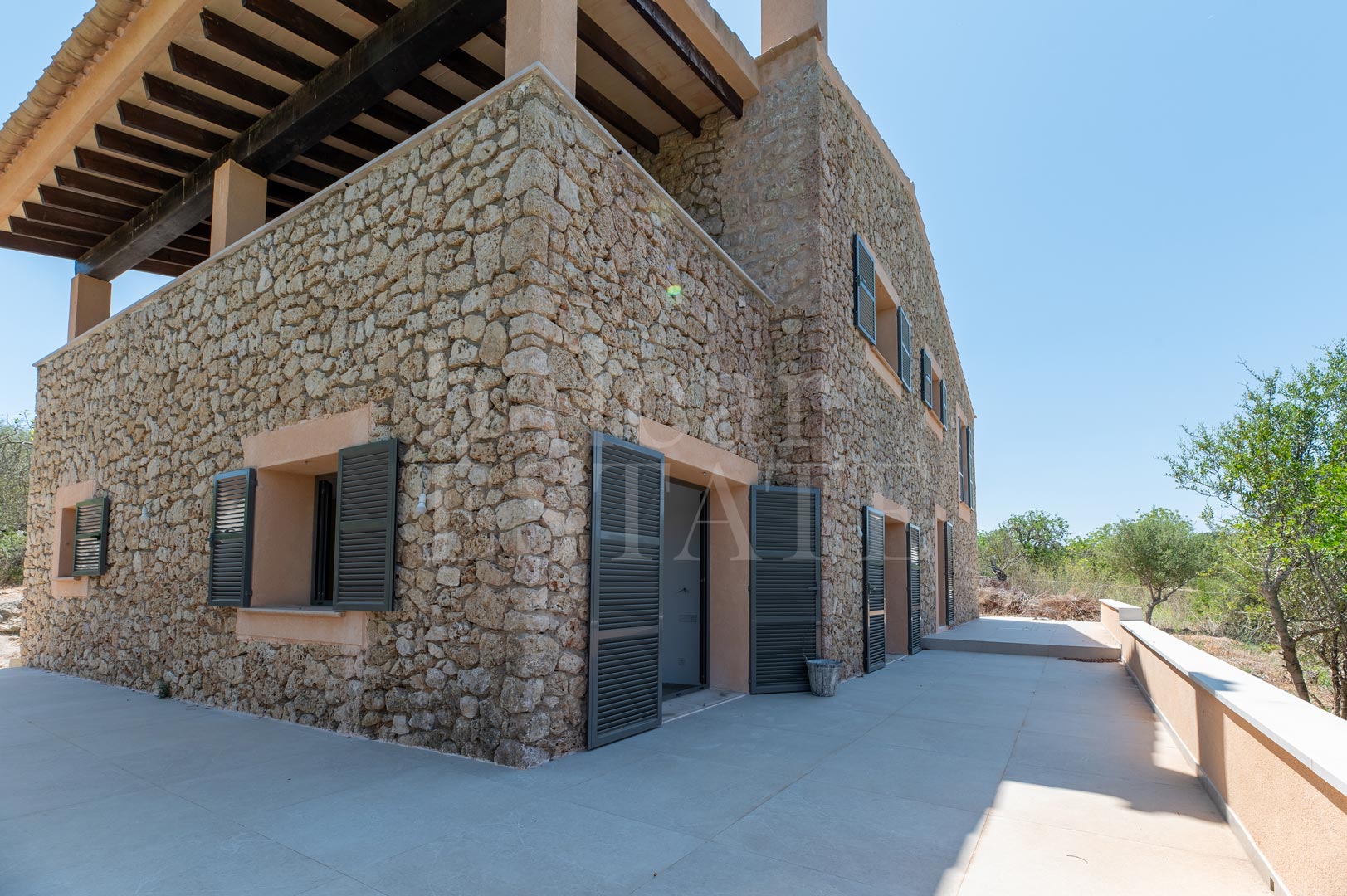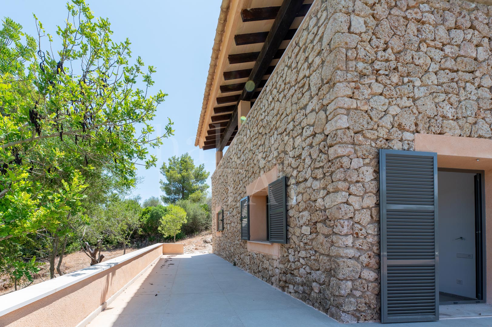 Inmitten der sanften Hügel von Sant Llorenç des Cardassar erhebt sich diese im Jahr 2025 fertiggestellte Finca wie ein stiller Rückzugsort.