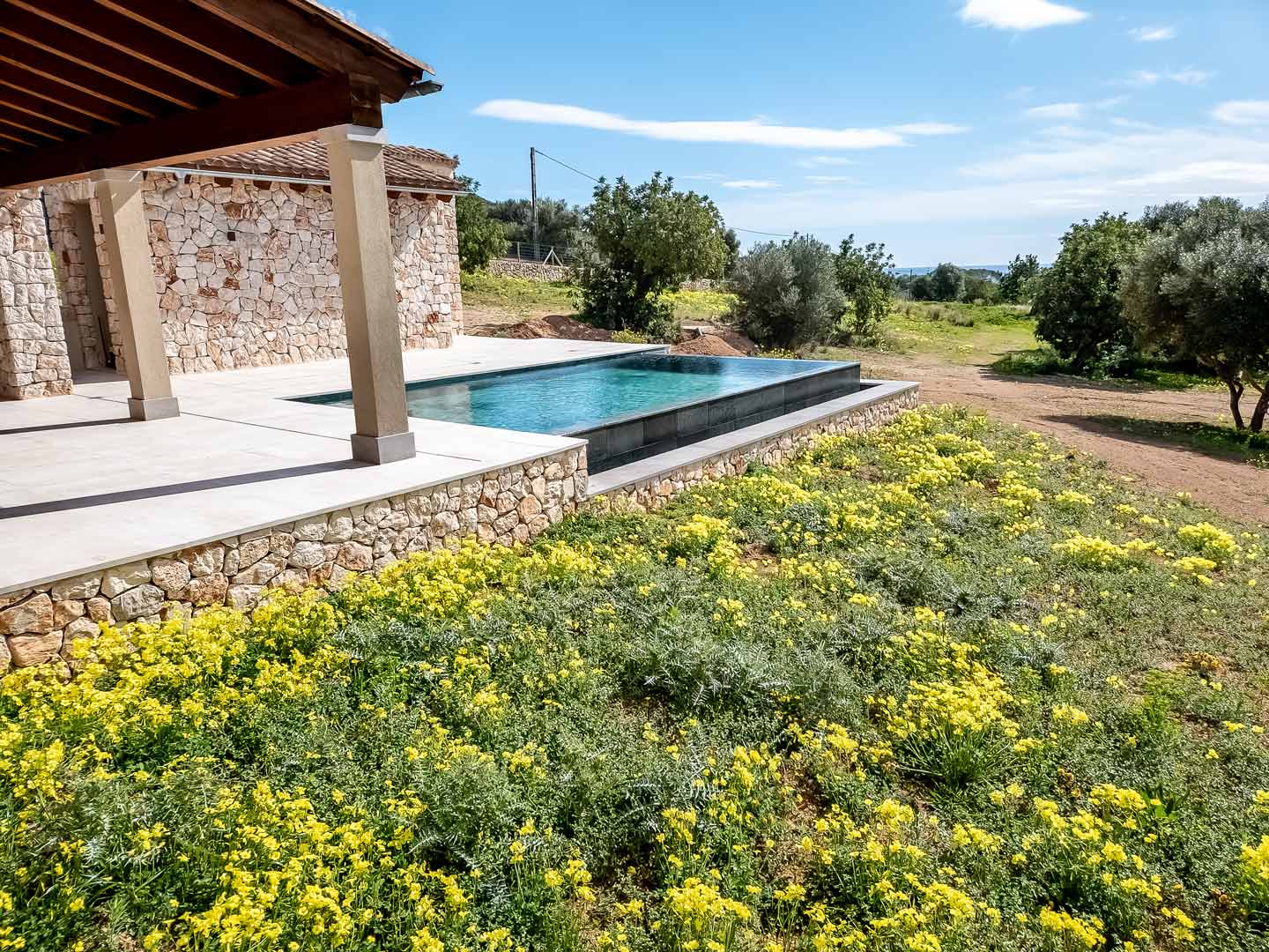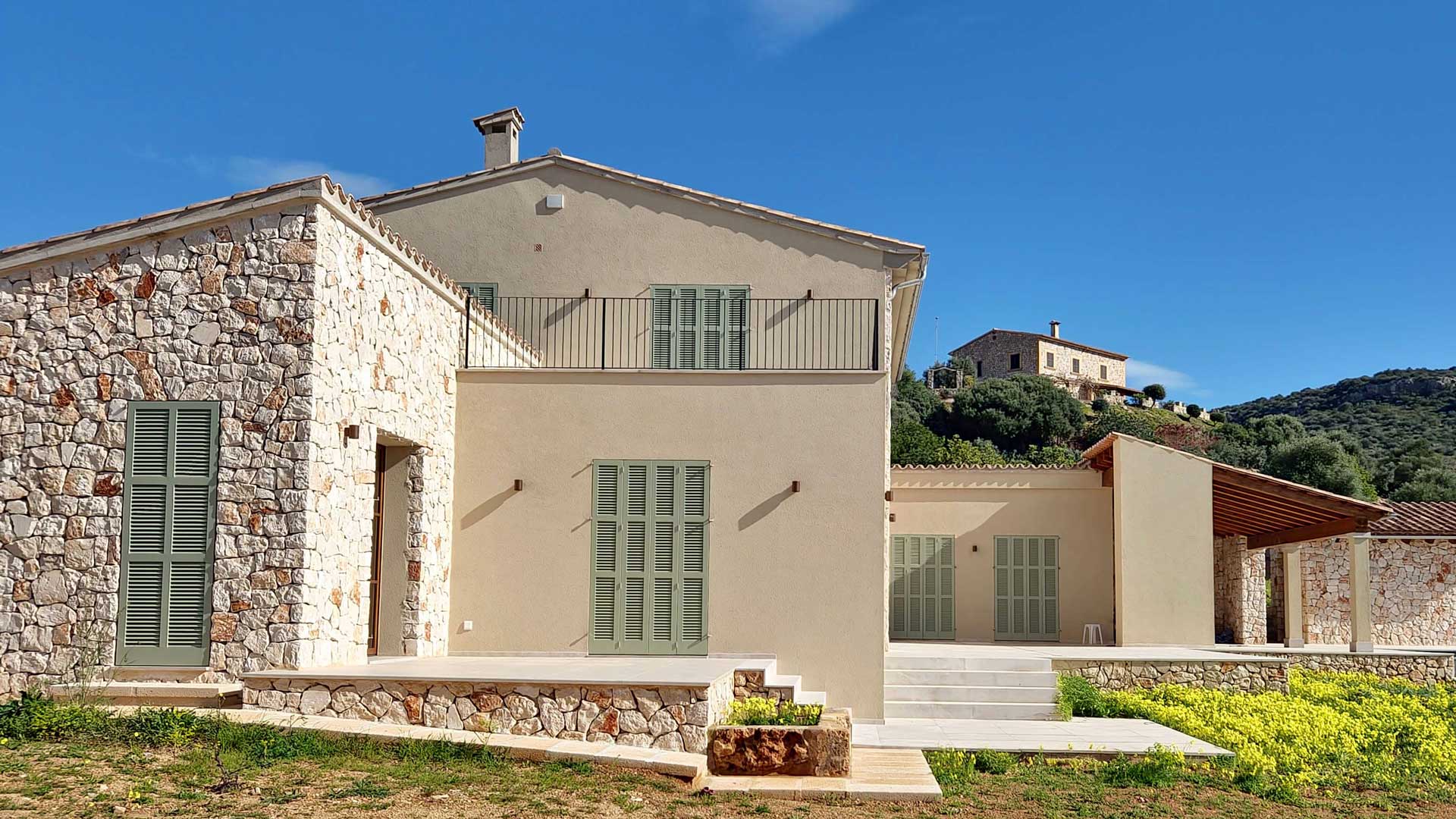 An einem sonnigen Tag auf Mallorca stellt sich die Finca Solitaire vor – ein neues Landhaus in der Nähe von Sant Llorenç, erbaut 2024 auf einem 14.000 m² großen Grundstück. Umgeben von einer handgearbeiteten Natursteinmauer und ausgestattet mit automatischen Toren aus kaffeefarbenem Roststahl, beschreibt sich das Haus offen und ehrlich. Der erfahrene Bauherr bringt über 50 Jahre Know-how in das Projekt ein. Noch ist nicht alles fertig: Pool, Badezimmer und Gäste-WC stehen kurz vor der Vollendung – aber bald wird das Anwesen in voller Pracht erstrahlen.