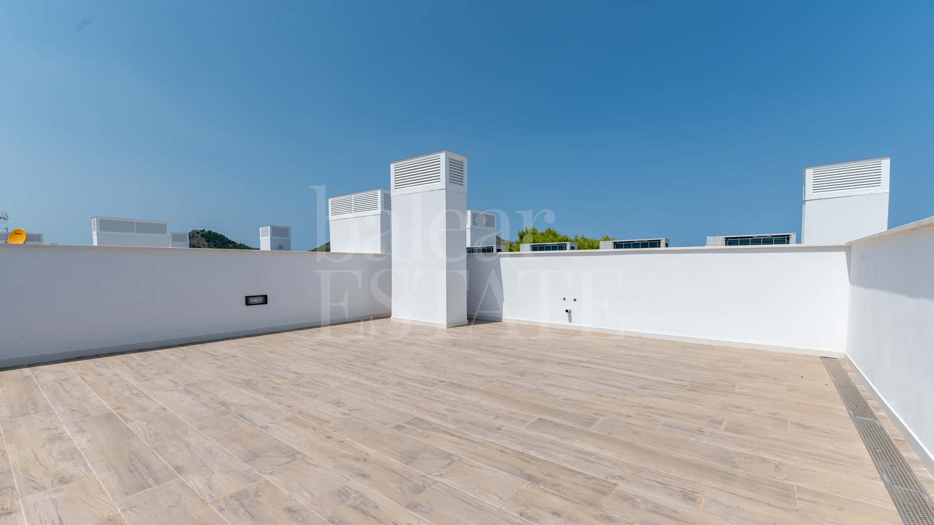 Der exklusive Neubau S’Entrador bietet 19 hochwertige Wohnungen auf drei Etagen und 33 Außenstellplätze mit E-Ladevorbereitung. Im Erdgeschoss warten vier Apartments mit eigener Terrasse und Garten. Über zwei Treppenhäuser und Aufzüge erreichen Sie die oberen Stockwerke. Der Gemeinschaftsbereich verfügt über Pool, Sonnenterrasse und Kinderspielplatz. In den ersten bis dritten Etagen liegen jeweils fünf Wohnungen. Das Dachgeschoss bietet eine Gemeinschaftsterrasse für Technik sowie fünf private Dachterrassen mit Poolvorbereitung. S’Entrador verbindet modernes Wohnen, Komfort und Top-Lage – ideal als Hauptwohnsitz, Feriendomizil oder Kapitalanlage.
